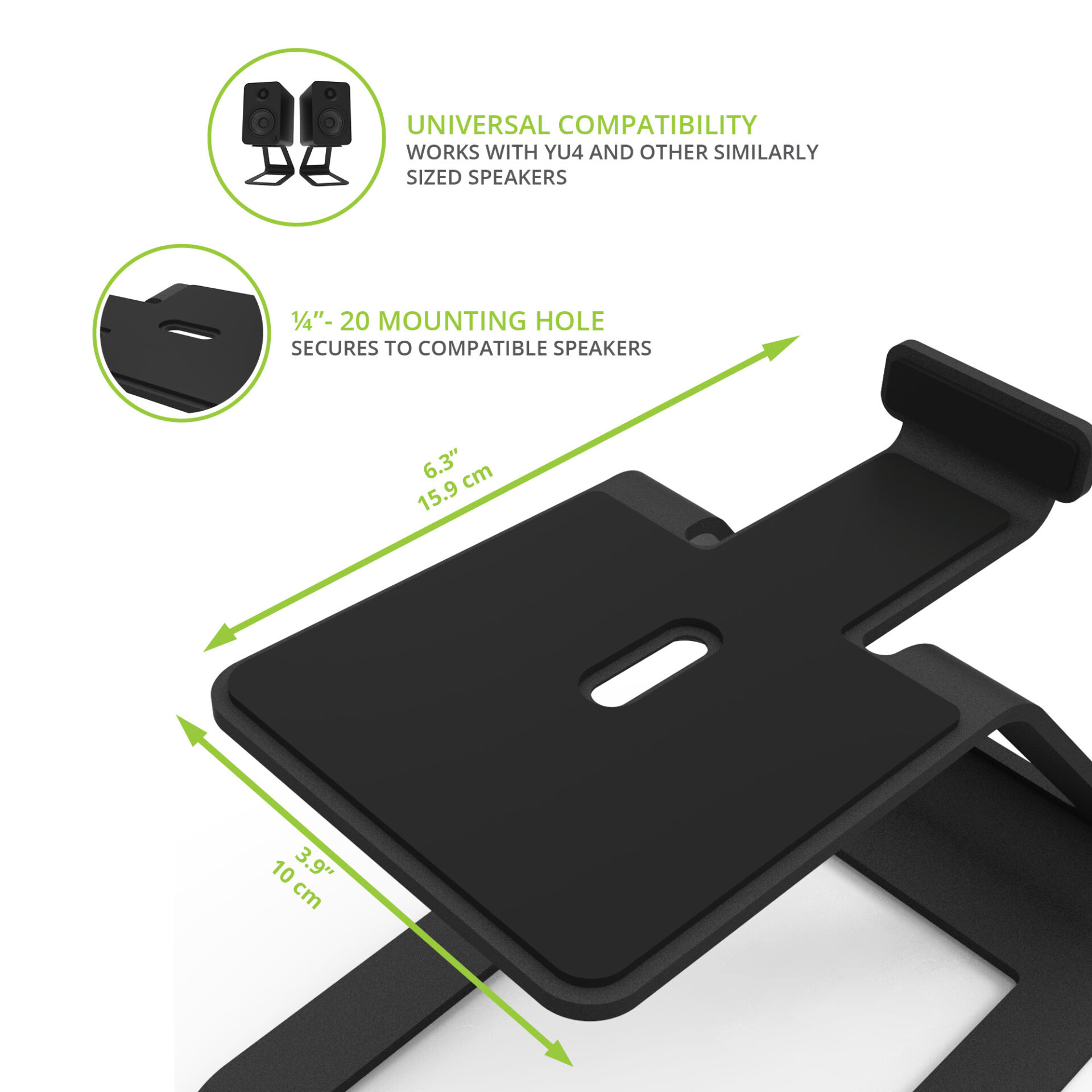 • SAFE AND SECURE – 2.0mm of silicone speaker dampening offer a high grip to keep your speakers and stand firmly in-place. Mounting screws are included to help you further secure compatible speakers to the stand.