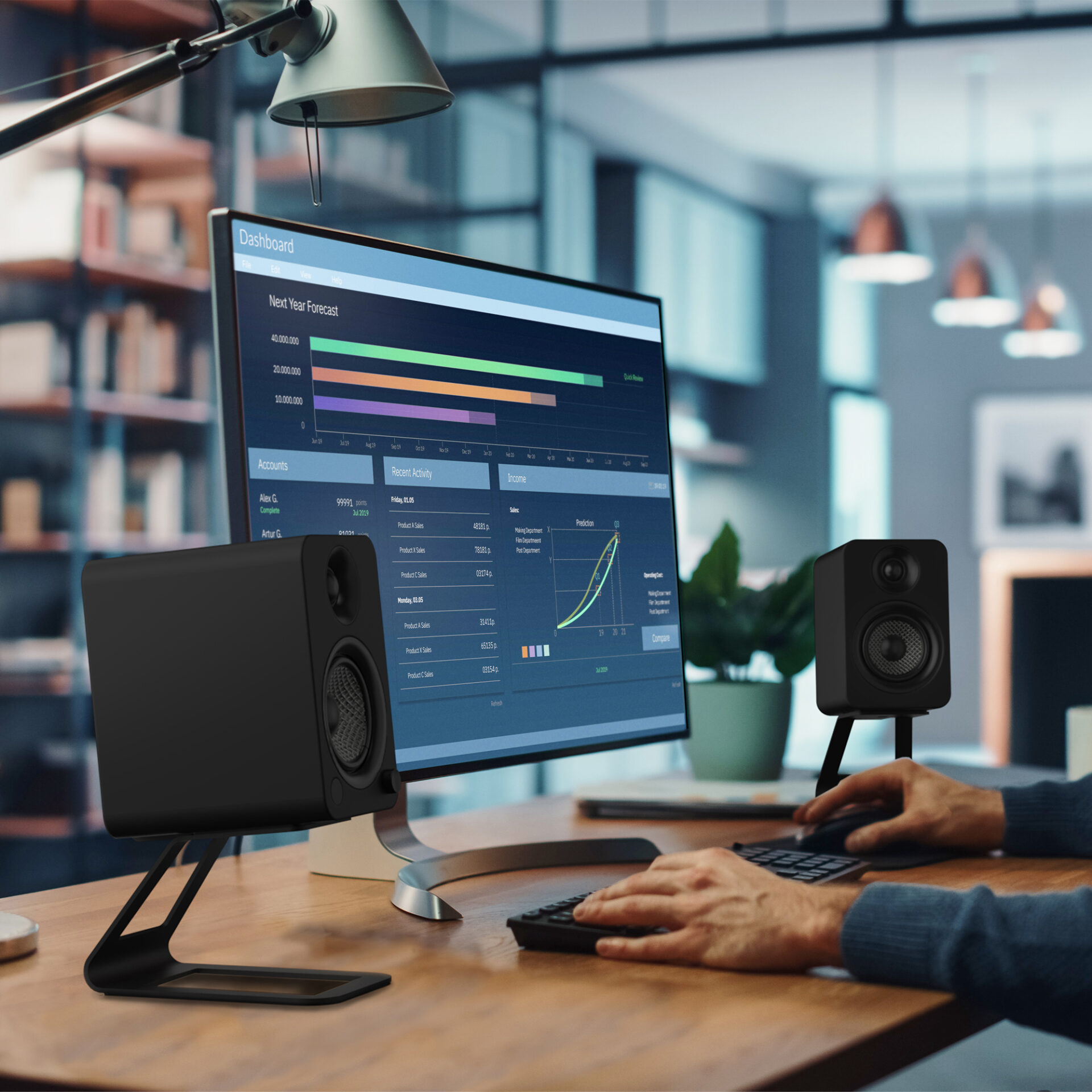 • ACCURATE, ON-AXIS OUTPUT – Elevate and align your speakers with your ears so that you can enjoy flawless on-axis sound and prevent reflection from nearby surfaces.