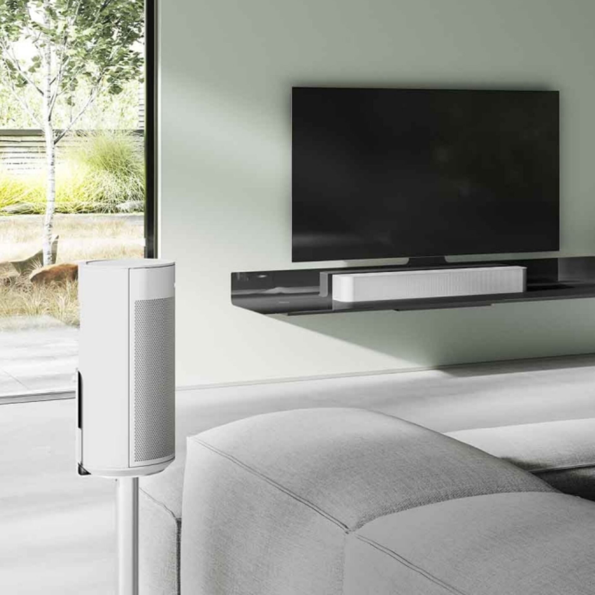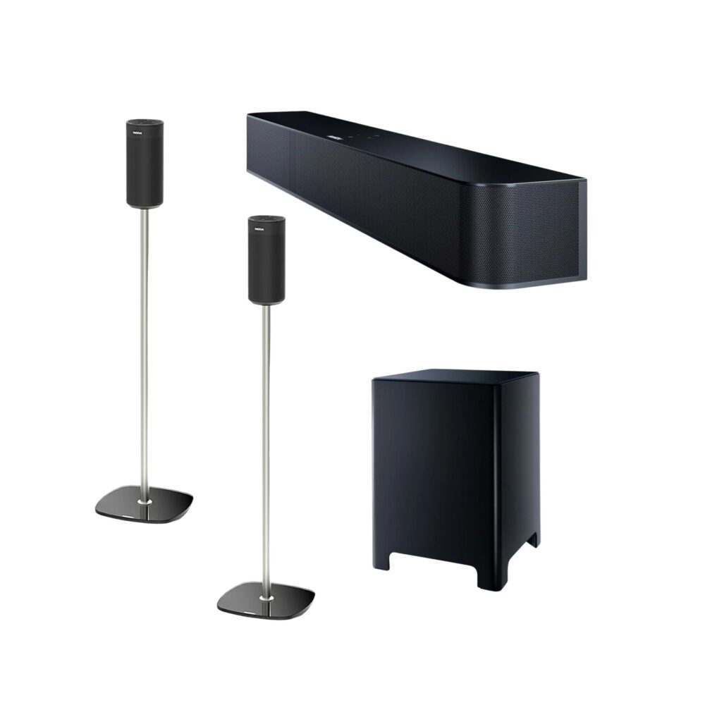 Transform your living room into a private theater with this complete 5.1 wireless surround system. The S100 soundbar, B100 subwoofer, and rear A100 speakers deliver immersive, Swiss-engineered studio sound.