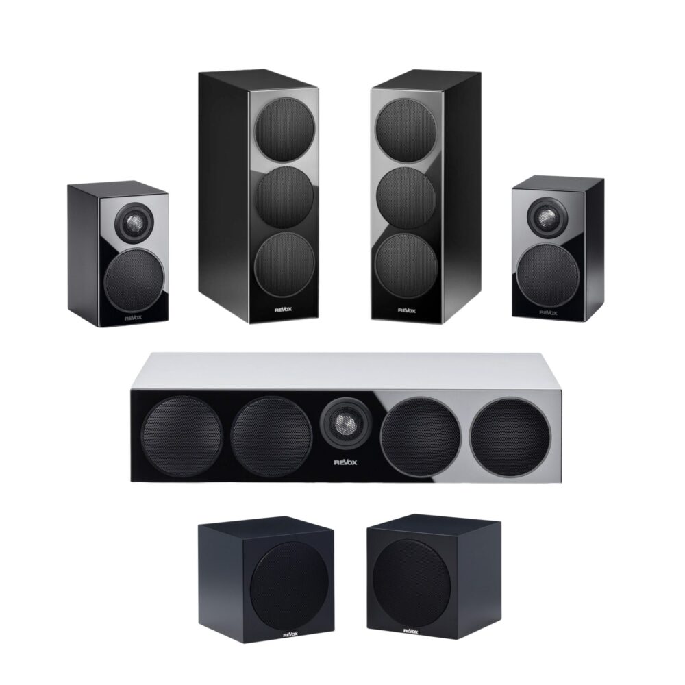Elegant design meets high-performance audio. This complete home cinema set features the stunning glass-fronted Revox G-Series (Center, Shelf, and Mini) paired with the ultra-compact Piccolo S60 for a sleek, unobtrusive surround setup.