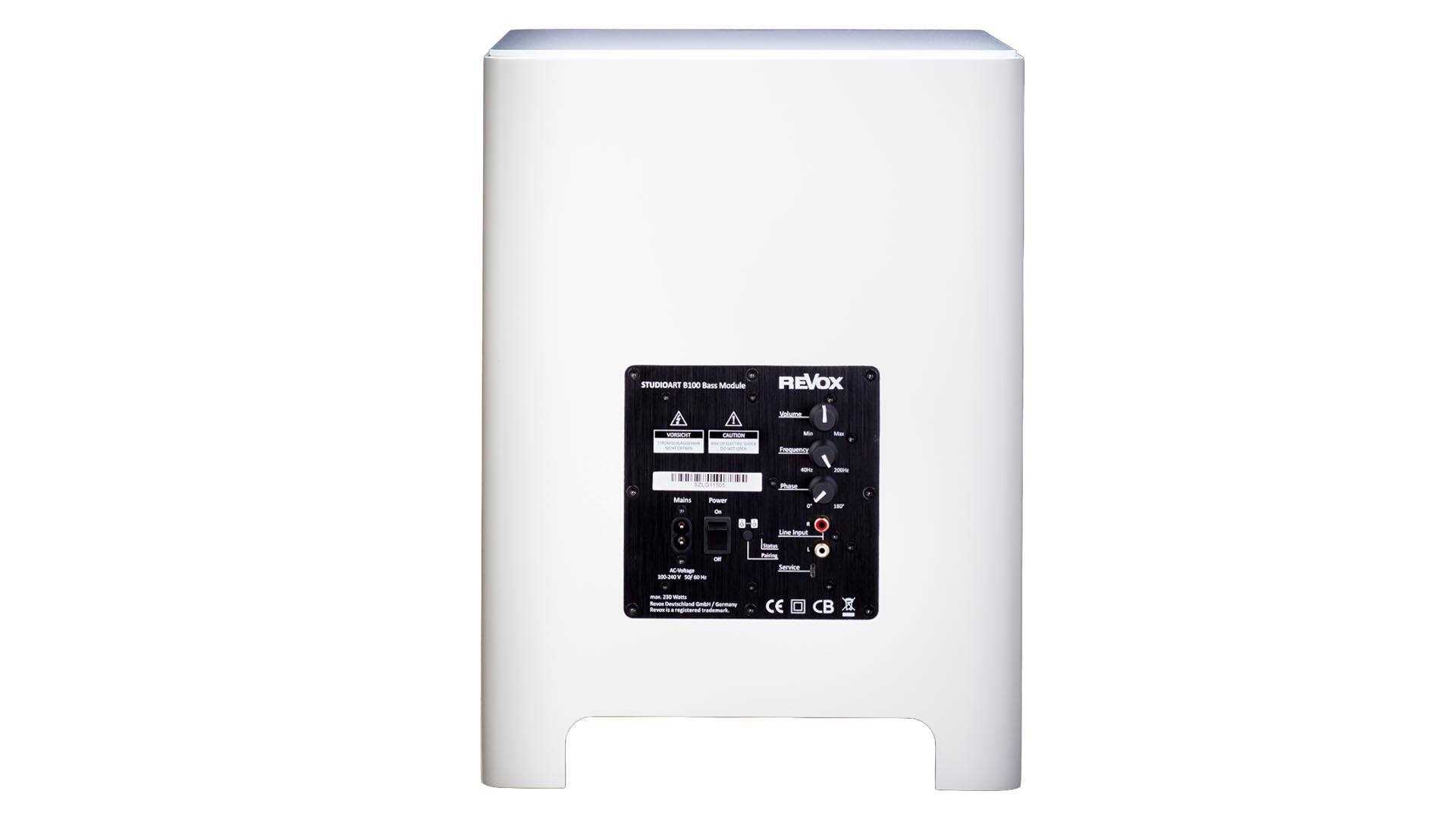The STUDIOART subwoofer B100 presents itself as the perfect partner for A100 and P100 as well as S100 if you require even more impressive bass reproduction. This is made possible by the innovative chassis and downfire principle (floor as radiation field) and the special housing construction with dual port for extremely precise bass reproduction. Practical: phase regulation and bass intensity adjustment via smartphone via the Revox app – directly from your listening and seating position. The STUDIOART B100 can also be used universally with other Revox speakers.